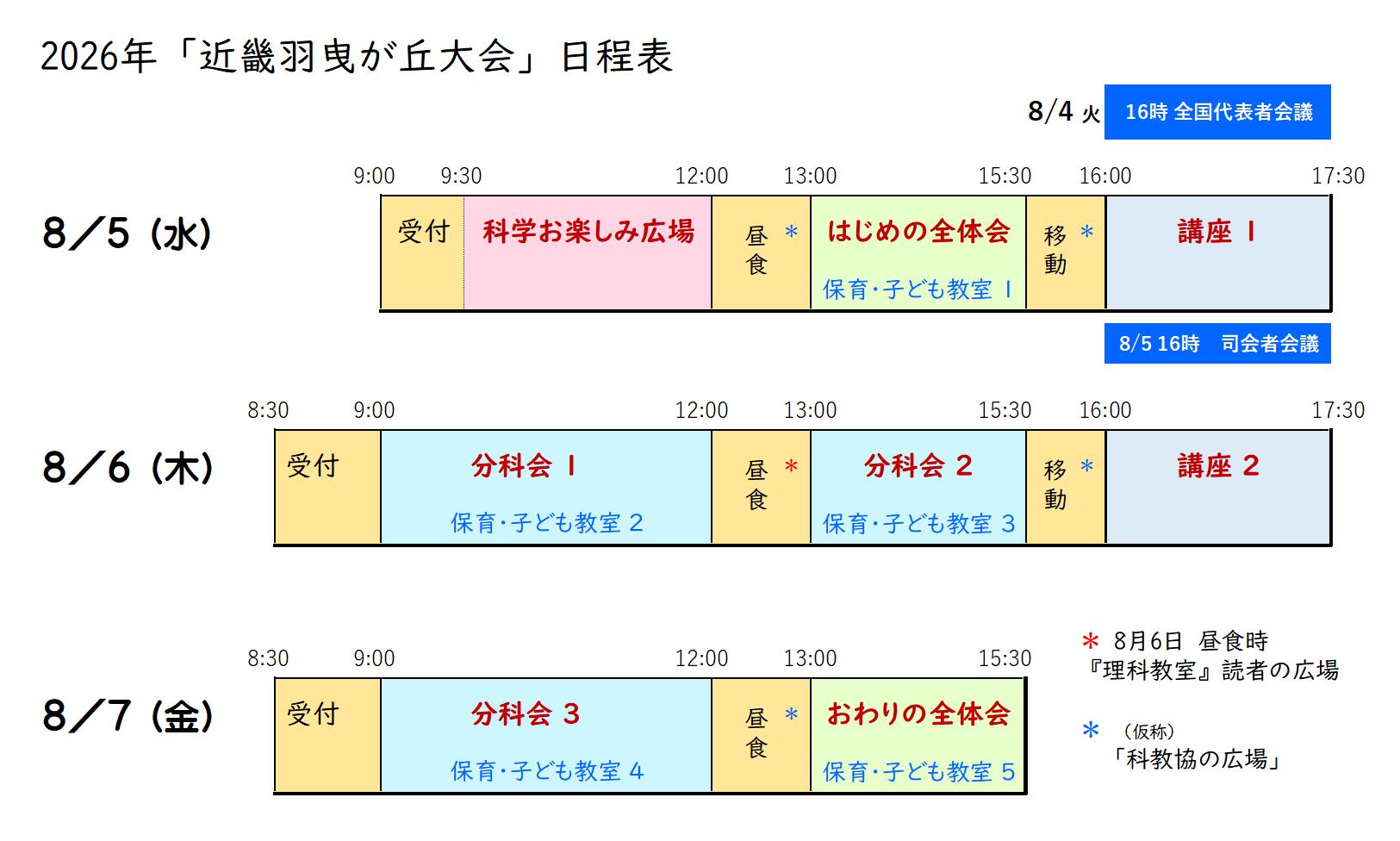 自然科学をすべての国民のものに 2023.10.07 2026年8月5水~7金 大阪・四天王寺大学にて「科教協全国大会」開催(共催) 科教協 全国大会 8/5~7 申し込み準備中 pdf 大会日程(素案) 72th 全国大会(近畿羽曳が丘大会)実行委員会ニュース No.1